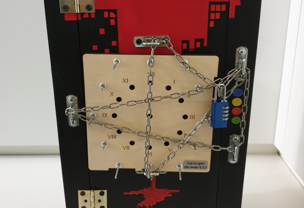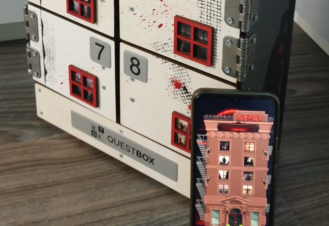 Quest Box Maniac's House 1 - Portable Escape Room with electronic locks and android APP for game.